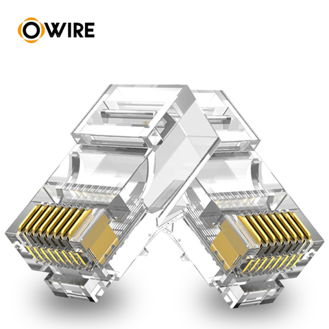 موصل Owire RJ45 Cat6/Cat5e 8P 8C مع جهات اتصال مطلية بالذهب UTP/STP/FTP كابلات اتصالات متوافقة